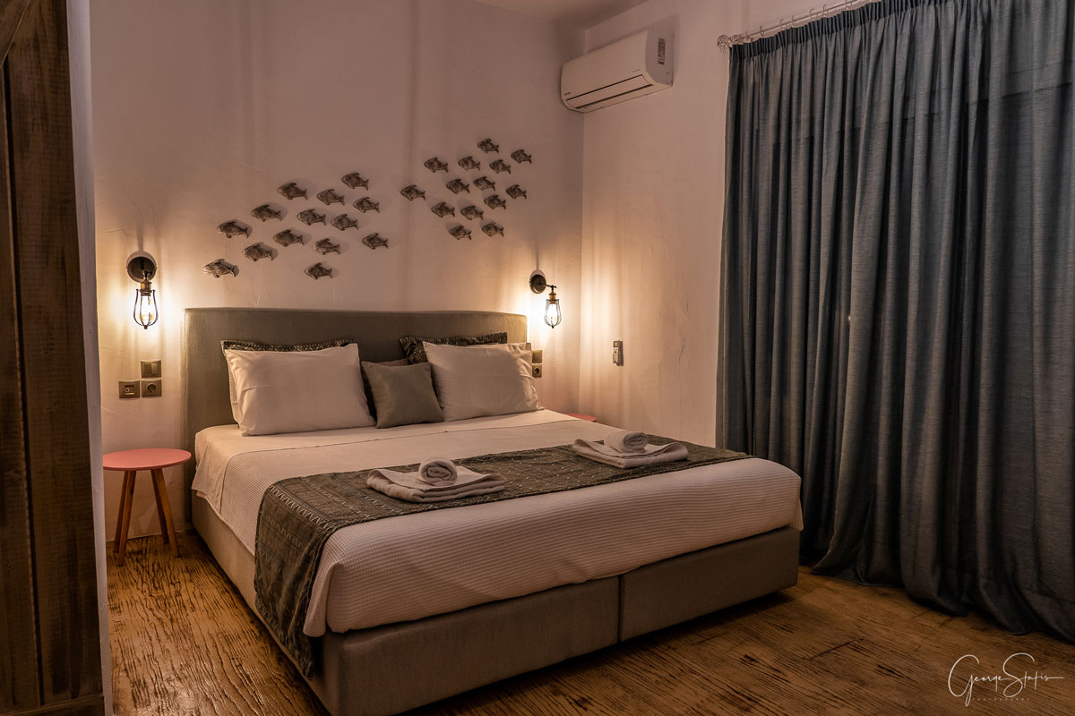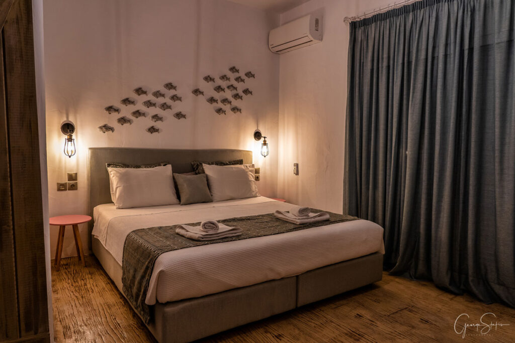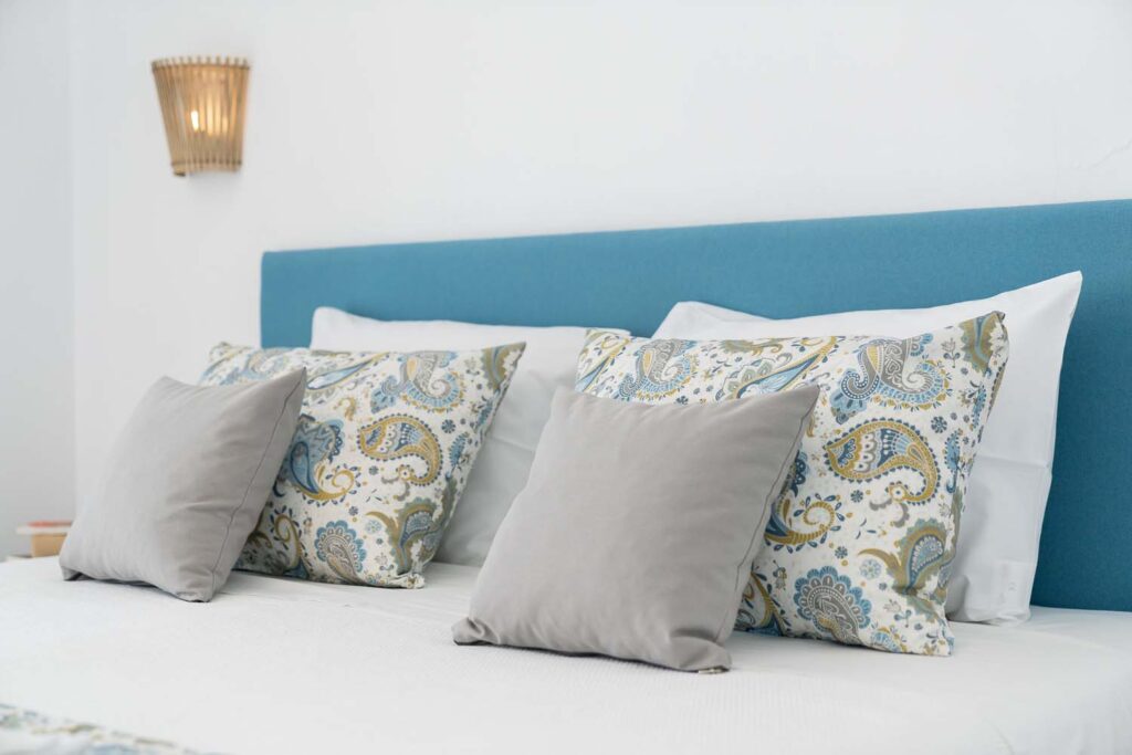 The villa features a carefully planned layout, with a guest bathroom on the ground floor. A staircase leads to the first floor, which hosts three spacious bedrooms, ensuring privacy and convenience for all guests. Each room is designed to be a relaxing retreat, offering comfort after a day of exploring the island.